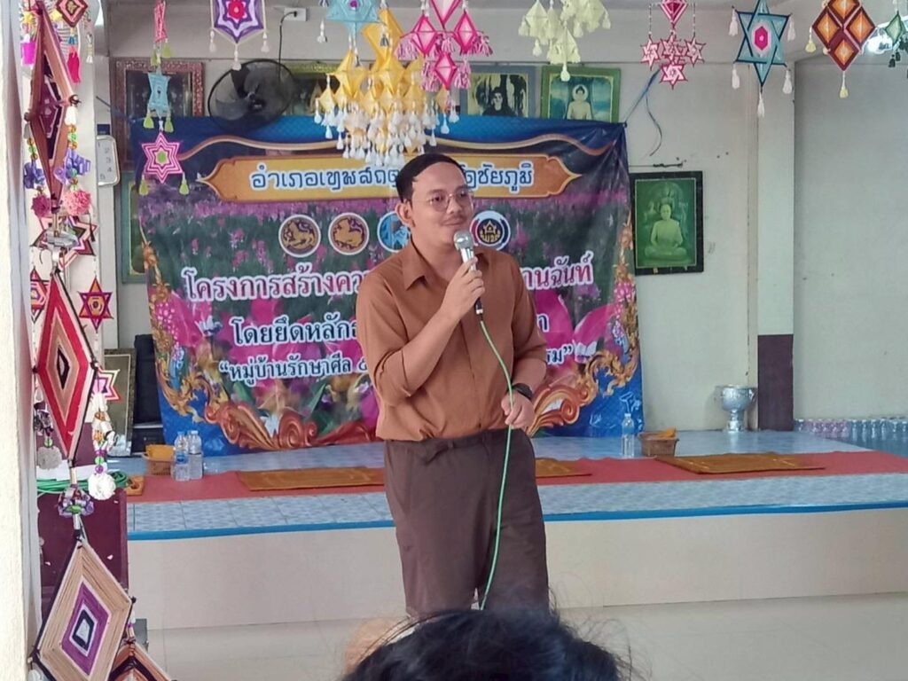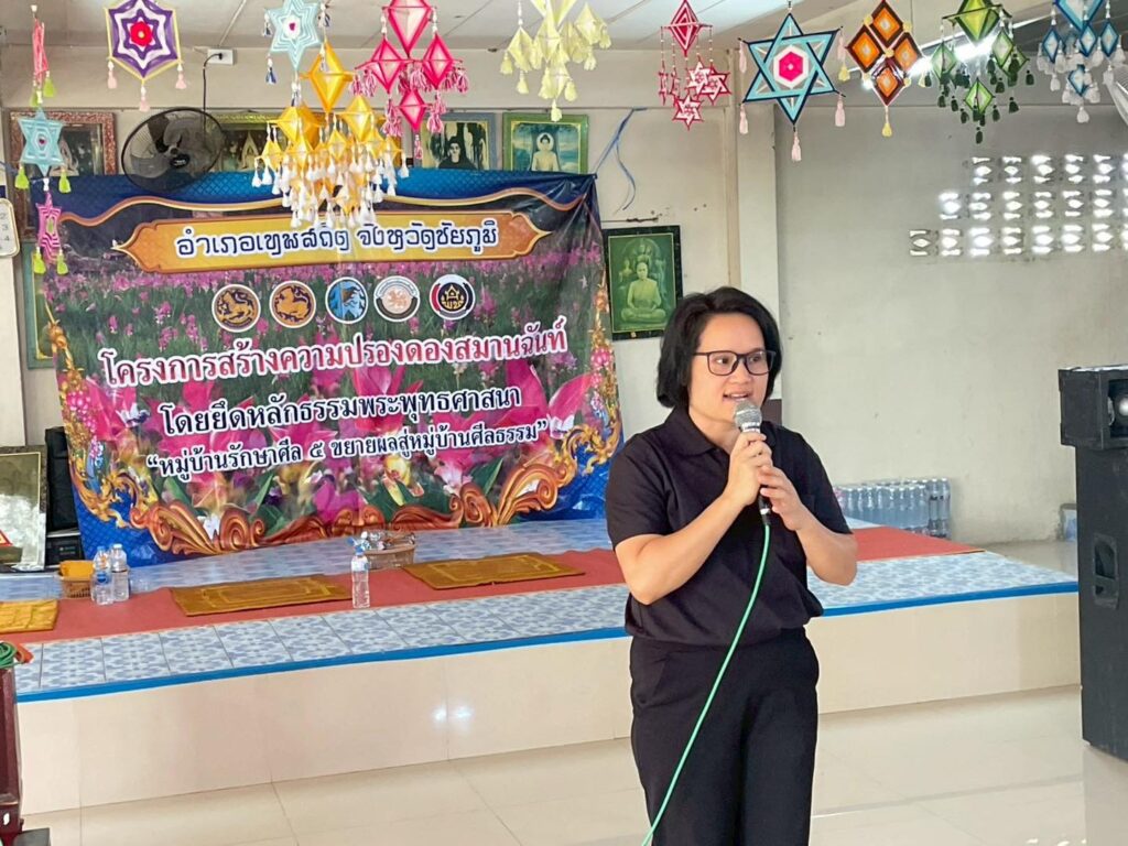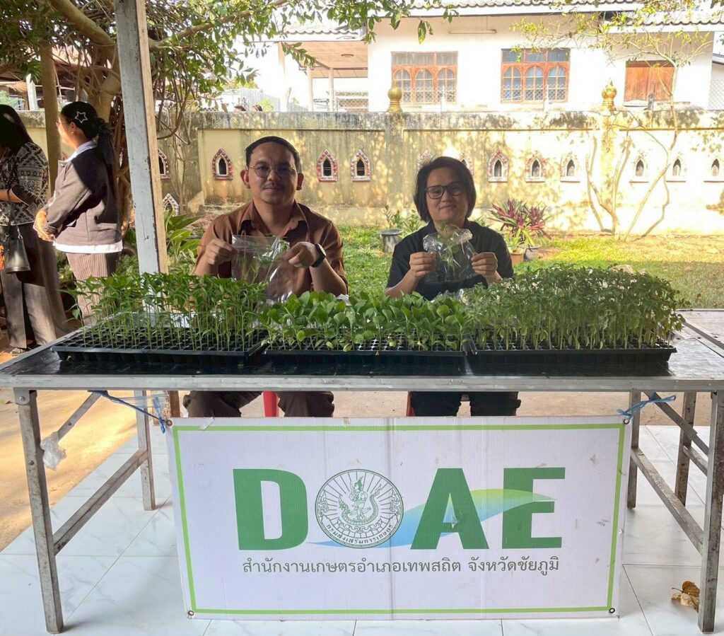 นายพรชัย ทุราช เกษตรอำเภอเทพสถิต มอบหมายให้ นางสาวสมปอง เชิญกลาง นักวิชาการส่งเสริมการเกษตรชำนาญการ และนายเจนภพ ทองรักษ์ นักวิชาการส่งเสริมการเกษตร ร่วมการออกให้บริการตามโครงการสร้างความปรองดองสมานฉันท์ โดยใช้หลักธรรมทางพระพุทธศาสนา “หมู่บ้านรักษาศีล 5 ขยายผลสู่หมู่บ้านศีลธรรม” การออกให้บริการอำเภอยิ้มเคลื่อนที่ ประจำเดือน กุมภาพันธ์ 2569 เพื่อนำงานปกติออกไปบริการประชาชน การให้การสงเคราะห์ผู้ยากไร้ หรือผู้ด้อยโอกาส พบปะชี้แจง ข้อราชการความรู้ข่าวสารต่าง ๆ ตลอดจนรับทราบปัญหาความเดือดร้อนของประชาชน และร่วมกันพิจารณาหาแนวทางแก้ไขปัญหาความเดือดร้อน ของประชาชนให้สำเร็จ และเป็นรูปธรรมเป็นประจำทุกเดือน โดยสำนักเกษตรอำเภอเทพสถิต นำพืชผักสวนครัว ร่วมให้บริการกับผู้มาเข้าร่วมโครงการดังกล่าว พร้อมทั้ง รณรงค์การหยุดเผาเศษวัสดุเหลือใช้ทางการเกษตร ณ วัดป่าข้าว บ้านป่าข้าว หมู่ที่ 13 ตำบลวะตะแบก อำเภอเทพสถิต จังหวัดชัยภูมิ