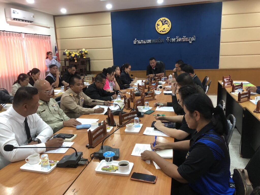 นายพรชัย ทุราช เกษตรอำเภอเทพสถิต ร่วมประชุมหัวหน้าส่วนราชการ คณะกรรมการ บริหารงานอำเภอแบบบูรณาการ (ก.บ.อ.) เพื่อชี้แจงข้อราชการของสำนักงานเกษตรอำเภอเทพสถิต เรื่อง แจ้งเตือนภัยแล้ง (การขาดน้ำของพืช) การยกเลิกและการเพิกถอนวิสาหกิจชุมชนที่ขาดต่ออายุ 2 ปี การติดตามการคืนเงินข้าวนาปี 66/67 ประกาศผลการคัดเลือกเกษตรกร บุคลทางการเกษตร และสถาบัน เกษตรกรดีเด่นจังหวัดชัยภูมิ ประจำปี 2569 โดยมี นายวรวิทย์ นามมหานวล นายอำเภอเทพสถิต เป็นประธาน ในการประชุมดังกล่าว ณ ห้องประชุมที่ว่าการอำเภอเทพสถิต ชั้น 2 อำเภอเทพสถิต จังหวัดชัยภูมิ